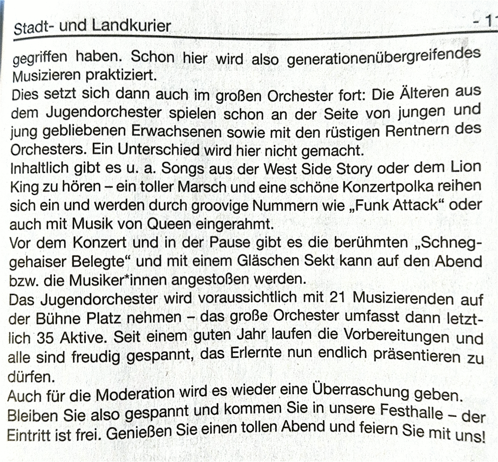 Im Stadt-und Landkurier wurde auch über die Jahreskonzert berichtet.